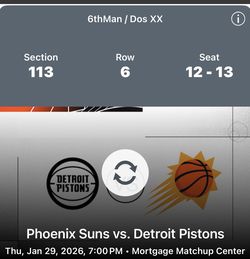 Suns vs Pistons ROW 6 tickets$600Mesa, AZ