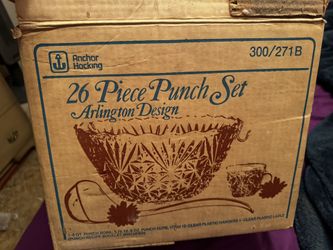 Anchor hawking 26 piece glass punch bowl set Arlington design$130El Paso, TX