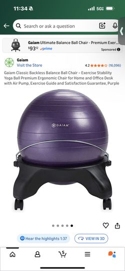 Gaiam Classic Backless Balance Ball Chair – Exercise Stability Yoga Ball Premium Ergonomic Chair for Home and Office Desk with Air Pump, Exercise Guid$30New Caney, TX