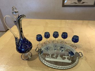 Vintage Greek Cobalt Blue Silver Overlay Decanter Set – Complete$275San Diego, CA