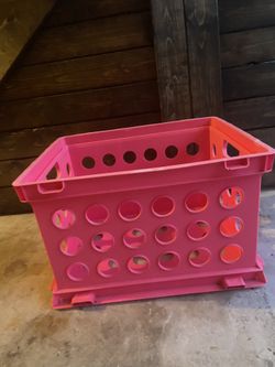 Pink Plastic Bin & Wooden Bar Stool$4Spring, TX