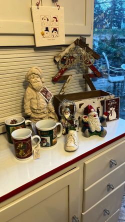 10 Piece Christmas Lot, 1990 Austin Products Boy Santa Statue, Wood “Joy” Box, Santa Musical Etc. $25Puyallup, WA
