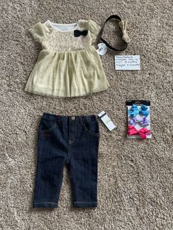 NEW Baby girl clothes 3-6 months set dress shirt, jeans pants, hair bows in package. New with tags$10Auburn, WA