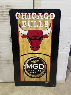 Chicago Bulls Miller MGD Genuine Draft Metal Basketball Sign Awesome sign ready to hang on your wall! Dated 1999 Miller Brewing Co., Milwaukee, WI OB$150Algonquin, IL