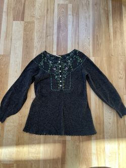Free People Gray Sweater Embroidered Medium Porch Pickup $15Old Bridge, NJ