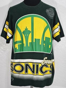 Vintage Seattle Supersonics Hockey Shirt BIG LOGO AOP Kemp Payton Sonics 90s π₯$150Lacey, WA