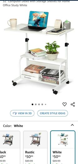 Portable Rolling Desk on Wheels Small Standing Desk Adjustable Height Desks with Wheels for Small Spaces, 32" Computer Desks with Storage Shelves for $35Phoenix, AZ