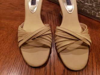 New Women's Vivan Mustard Yellow Sequined Fabric Wedge Sandals Size 9$50Las Vegas, NV