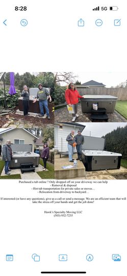 Hot Tub And Swim Spa Moving $800Gervais, OR