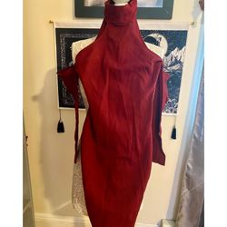 Lac Bleu Burgundy Fitted Cold Shoulder Dress$10Bronxville, NY
