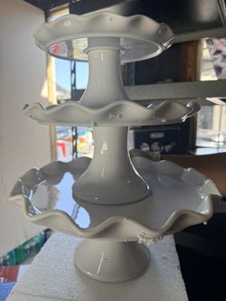 MEMBER'S MARK BRIGHT WHITE DURABLE STONEWARE 3PC CAKE STAND SET WITH RUFFLED EDGe$50Crystal City, CA