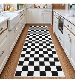Terrug Black and White Checkered Area Rug for Kitchen,2x6 Runner Rugs Washable with Non Slip for Bedroom,Soft Low Pile Stain Resistance Retro Carpet f$30Rancho Cordova, CA