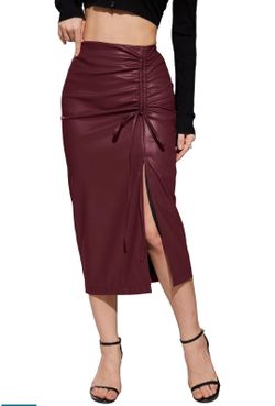 Women's Faux Leather Long Skirt High Waisted Asymmetrical Trendy Side Slit Work Pencil Midi Skirts for Women$30Rancho Cordova, CA