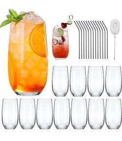 QAPPDA Drinking Glasses Set of 12, 16 oz Highball Glasses with Straws, Clear Tall Water Glasses Premium Cocktail Glassware for Juice, Mixed Drinks, Ki$25Carmichael, CA