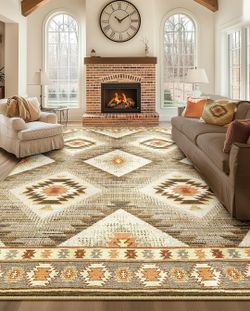 Area Rug 9x12 Rug Machine Washable Non-Slip Low Pile Print Pattern Western Rug for Living Room Bedroom Entryway Tribal Series -Cream/Camel$70Rancho Cordova, CA