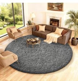 Round Rug 7Ft Grey Circle Area Rugs, Large Fluffy Fuzzy Living Room Carpet 7 foot,$40Rancho Cordova, CA