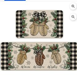 Warm Winter Wishes Mitten Kitchen Rugs Set of 2, Buffalo Plaid Check Bow Red Berry Farmhouse Kitchen Mats Decor, Christmas Holiday Floor Door Mat Home$40Rancho Cordova, CA