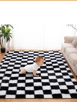 Super Soft Rug for Bedroom, 5x7 Ft Black and White Area Rug Classic Checkered Shaggy Anti-Skid High Pile Soft Fluffy Rug Fuzzy Carpet for Living Room $40Rancho Cordova, CA