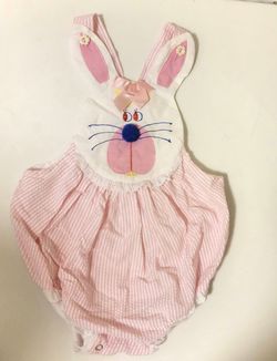 VTG 80s Pink Bubble Romper Overalls Easter Bunny Rabbit Infant Girls 18 mo.$30Nampa, ID