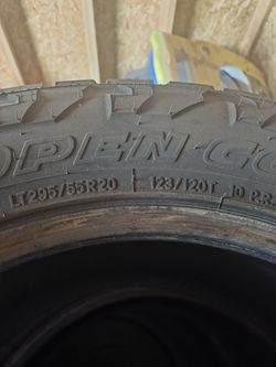 Twenty percent used LT295 /55R-20 Numbers on the tires are LT295/55r20 123/120T 10RR (DOT 73D8) (5M72420)$400St. Petersburg, FL