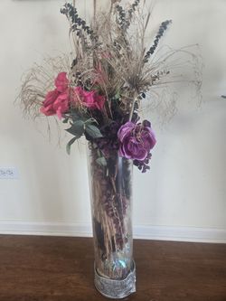 2 Pillar Glass Vases With Silk Flowers$30Tinley Park, IL