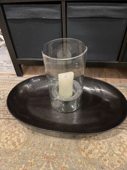 Pottery Barn Large Metal accent Tray And Glass Candle Cylinder $95Edmonds, WA