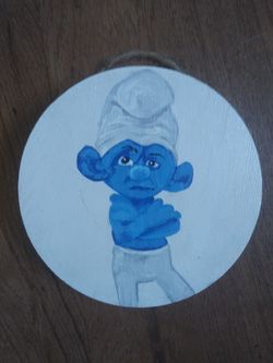 Grumpy smurf 5 inch circle wall hanging painting$10Saint Pete Beach, FL