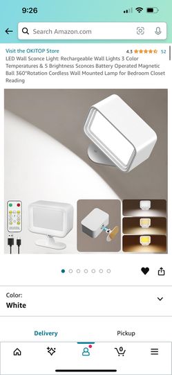 LED Wall Sconce Light: Rechargeable Wall Lights 3 Color Temperatures & 5 Brightness Sconces Battery Operated Magnetic Ball 360°Rotation Cordless Wall $10Federal Way, WA