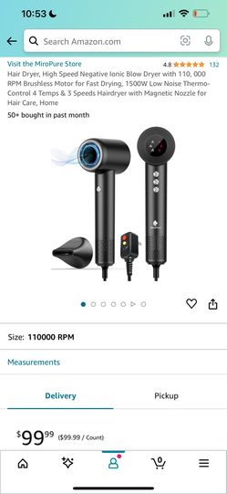 Hair Dryer, High Speed Negative Ionic Blow Dryer with 110, 000 RPM Brushless Motor for Fast Drying, 1500W Low Noise Thermo-Control 4 Temps & 3 Speeds $50Federal Way, WA