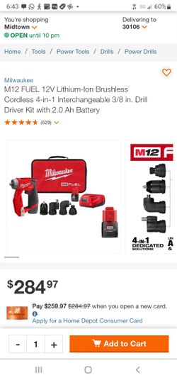 M12 4-in-1 Interchangeable 3/8 Drill Driver Kit $185Powder Springs, GA