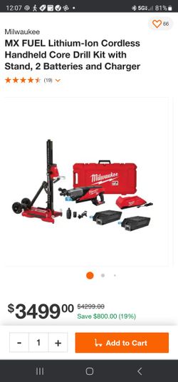 MX FUEL Lithium-Ion Cordless Handheld Core Drill Kit with Stand, 2 Batteries and Charger