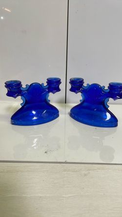 Pair Of Candlestick Holders Vintage Antique Blue Glass$30Ontario, CA