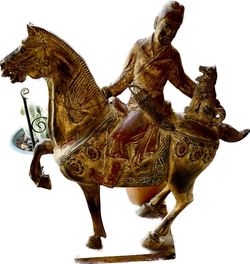 Chinese Tang Dynasty Funerary (618-907 A.D.) Polychrome Horse with Hunter and Dog$200Bakersfield, CA