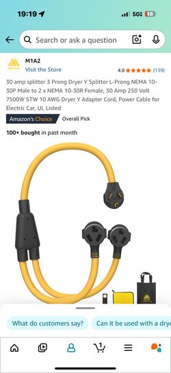 10-30P Male to 2 x NEMA 10-30R Female$20Fontana, CA