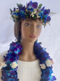 Blue Orchid Lei And Matching Crown Combo $140Norwalk, CA