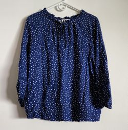 Women's White Polka Dots Blue Blouse Size L$10El Monte, CA