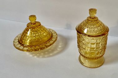 McKee Tappan Toy (Small) Amber Glass EAPG Lidded Butter & Lidded Sugar Antique $25 Porch Pick Up Arlington/Kennedale$25Arlington, TX