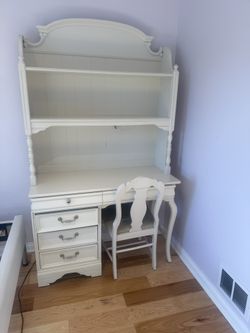 Solid wood white desk with chair, New LED light and hutch$180Roselle, IL