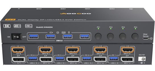 HDMI DP KVM Switch 4 Computers 2 Monitors, 8K@60Hz/4K@144Hz Dual Monitor KVM Switch 4 Port for 4 PCs Share 2 Monitors, with 4 USB3.0 Ports, USB Cables$65Phoenix, AZ