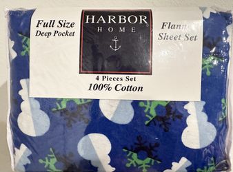 Harbor Home Holiday Winter Christmas Snowman 4 pc Flannel Sheet Set Full Size Deep Pocket 100% Cotton NEW NIP$25Bonita, CA