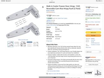 New Walk-In Cooler Freezer Door Hinge,1245 Reversible Cam-rise Hinge,flush, 2 Pack $25Visalia, CA