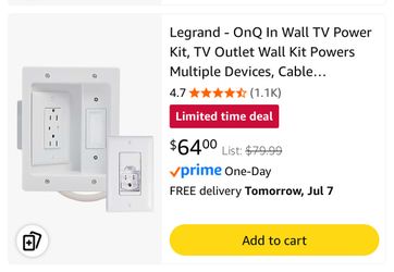 Legrand - OnQ In Wall TV Power Kit, TV Outlet Wall Kit Powers Multiple Devices, Cable Management Box Hides Cords, Recessed TV Outlet Works with All Pl$35La Canada Flt, CA