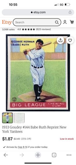Babe Ruth 1933$25Warwick, RI