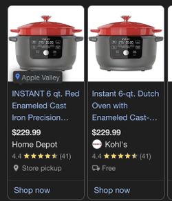 NEW INSTANT - 6 qt. Red Enameled Cast Iron Precision Electric Dutch Oven Multi-Cooker with Lid$200Hesperia, CA