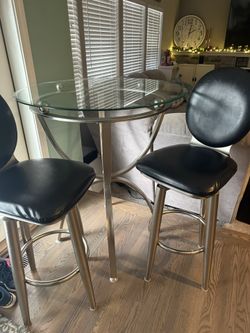 Glass bistro bar top 2 person pub table with stools. $100Puyallup, WA