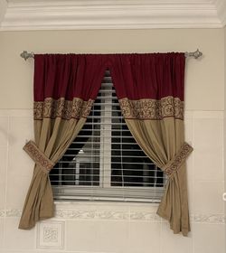 Chris Madden Burgundy and Gold Window Drapes With Tiebacks $45Laud Lakes, FL
