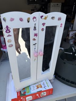 White Wooden Doll Closet for 18 Inch Dolls, Armoire Wardrobe with Acrylic Mirror & 6 Hangers, Storag$5Fontana, CA