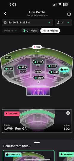2 Luke Combs Lawn Tickets ! Sat 10/5$160Bellevue, WA