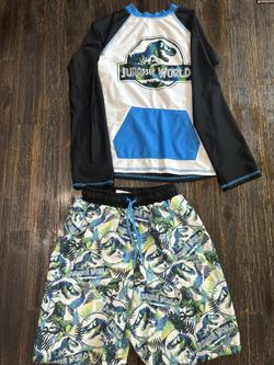 Jurassic Park Swim Trunks and Rash guard Size 8/10$15Covina, CA