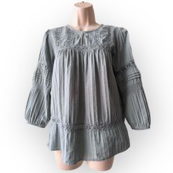 Unbranded Peasant Hippie Pleated Lace Yoke Detail Blouse, Size XS/S, Green $7Manchestr Ctr, VT